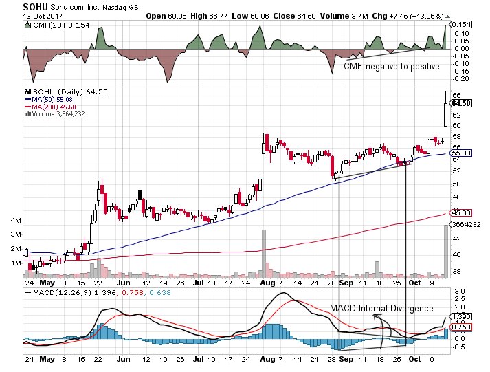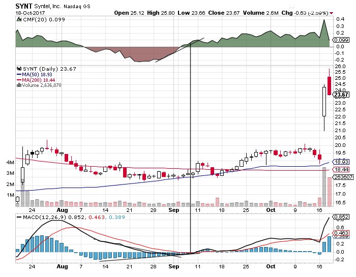 positive CMF,( a sign of accumulation) is usually followed by a breakout as seen in the example below.